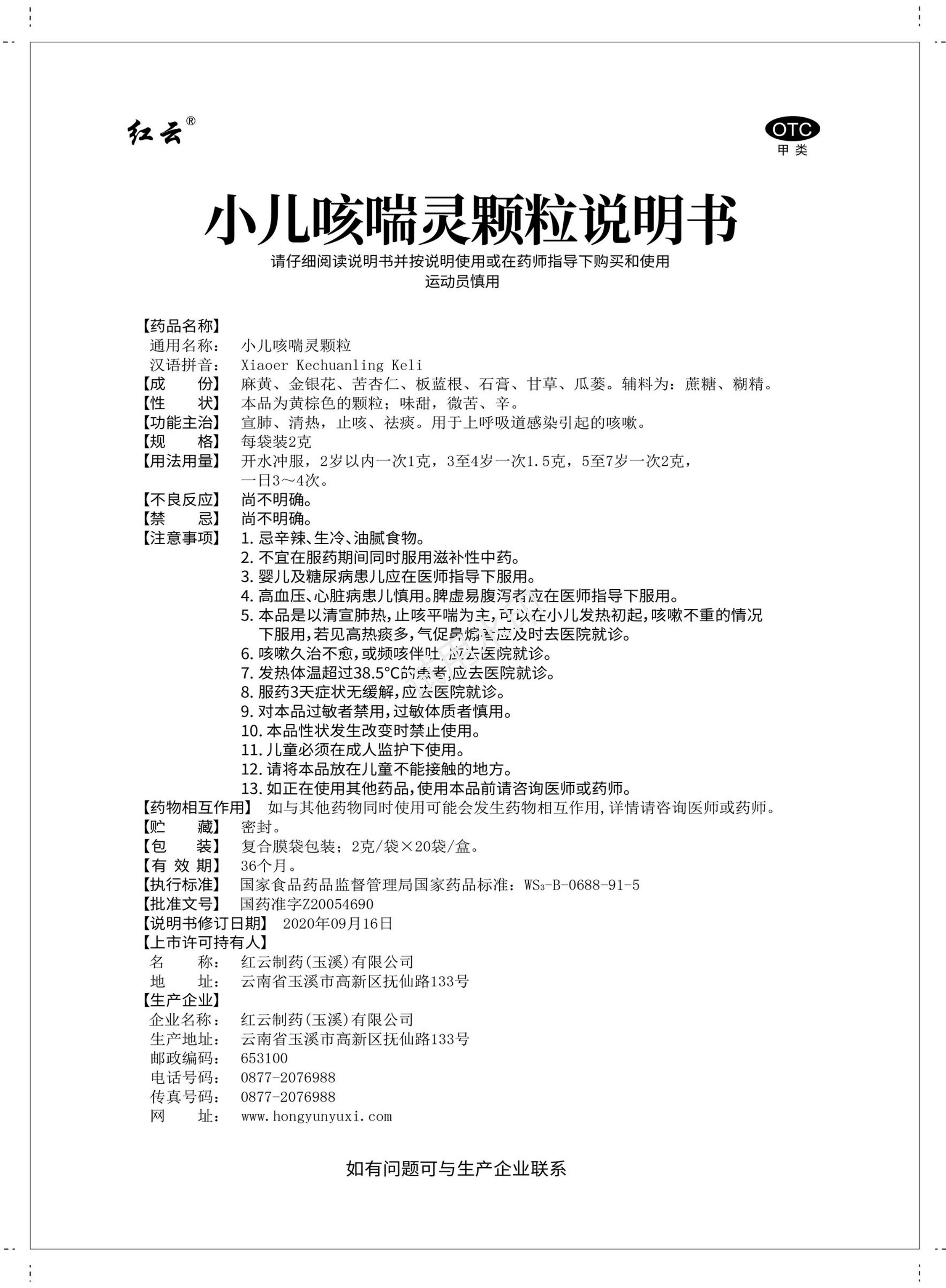 | 【注意事项】 | 1.忌辛辣、生冷、油腻食物。2.不宜在服药期间同时服用滋补性中药。3.婴儿及糖尿病患儿应在医师指导下服用。4.高血压、心脏病患儿慎用。脾虚易腹泻者应在医师指导下服用。5.本品是以清宣肺热,止咳平喘为主,可以在小儿发热初起,咳嗽不重的情况下服用,若见高热痰多,气促鼻煽者应及时去医院就诊。6.咳嗽久治不愈,或频咳伴吐,应去医院就诊。7.发热体温超过38.5℃的患者,应去医院就诊。8.服药3天症状无缓解,应去医院就诊。9.对本品过敏者禁用,过敏体质者慎用。10.本品性状发生改变时禁止使用。11.儿童必须在成人监护下使用。12.请将本品放在儿童不能接触的地方。13.如正在使用其他药品,使用本品前请咨询医师或药师。 |
